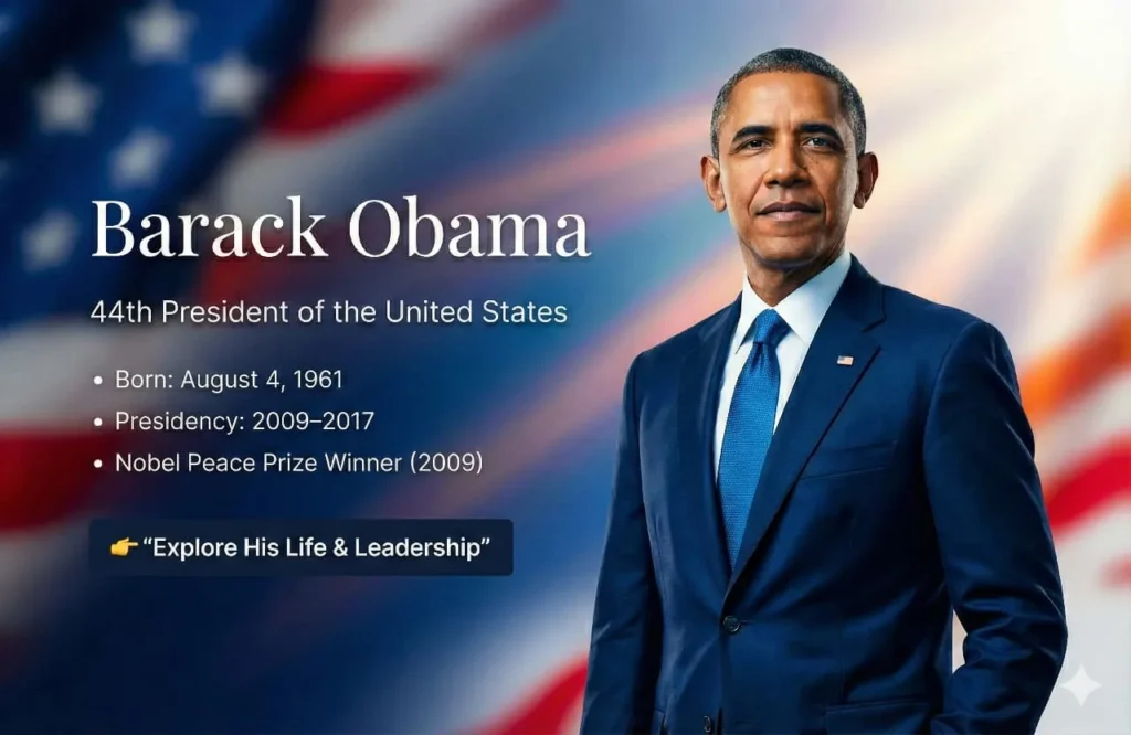 Barack Obama is a landmark figure in American history. When he was elected president in 2008, he not only became the first Black president but also inspired millions of people with the slogan “Yes We Can.” Born in Hawaii, this leader studied at Harvard Law School and began working as a social organizer in Chicago. He later entered national politics, serving in the Illinois Senate and the US Senate.