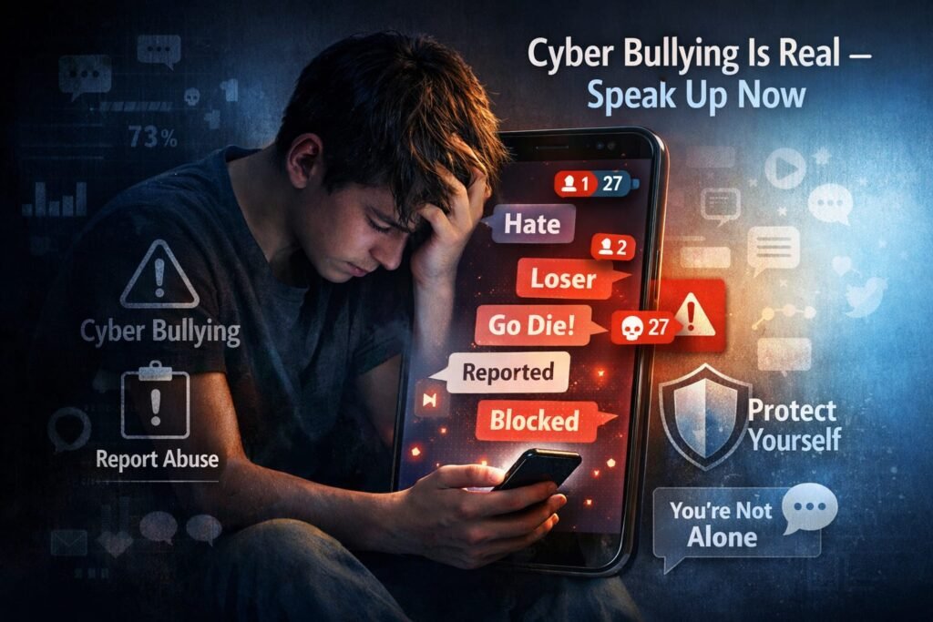 Cyber bullying is a big problem in today’s digital world. It happens when someone uses the internet or social media to hurt another person on purpose. This can include rude comments, threats, false rumors, or sharing private photos. As a result, victims feel sad, scared, and deeply stressed. Many lose confidence. Others stop going to school altogether.